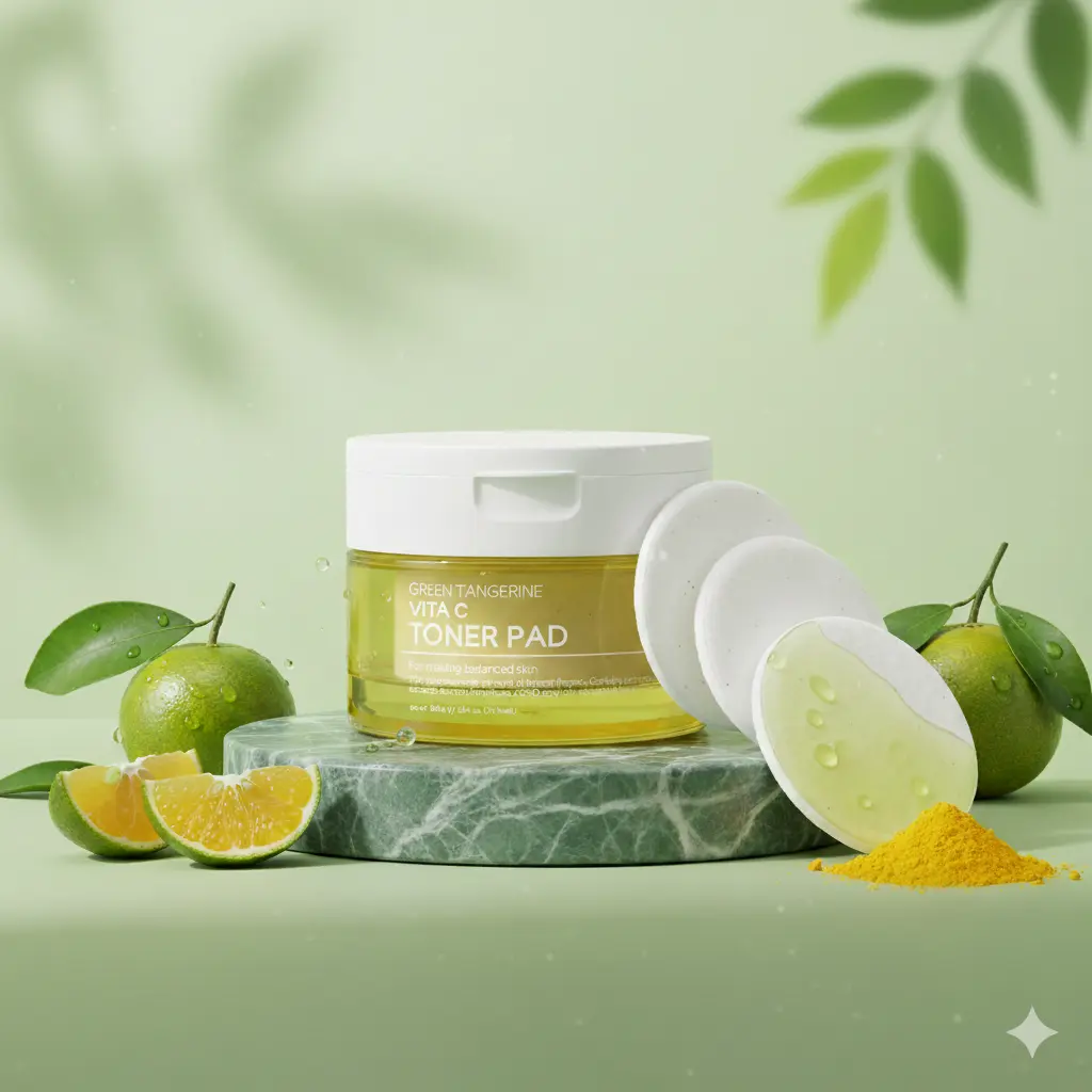 Tenzero Green Tangerine Vita C Toner Pad is a refreshing daily skincare essential designed to brighten, hydrate, and smooth your complexion. Infused with antioxidant-rich Green Tangerine Vitamin C, these soft 100% natural cotton pads gently sweep away impurities while delivering a burst of moisture and radiance.